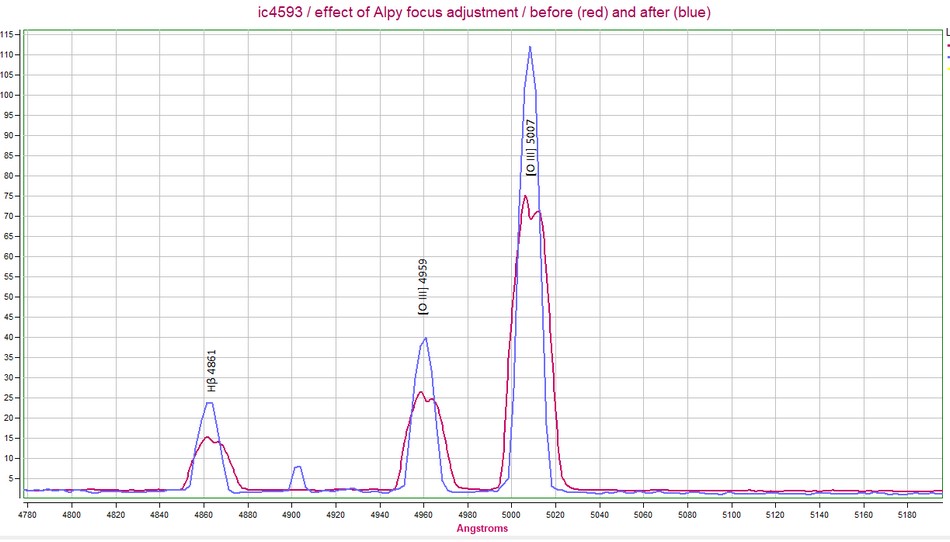 - ic 4593 spectrum before and after focus adjusment of Alpy focus. Great improvement !