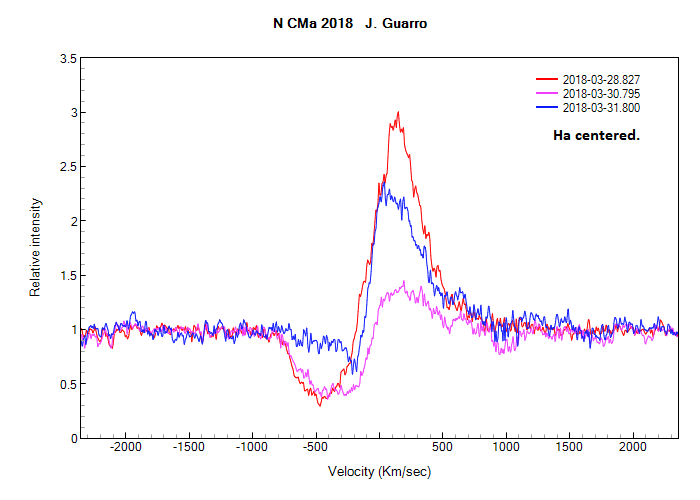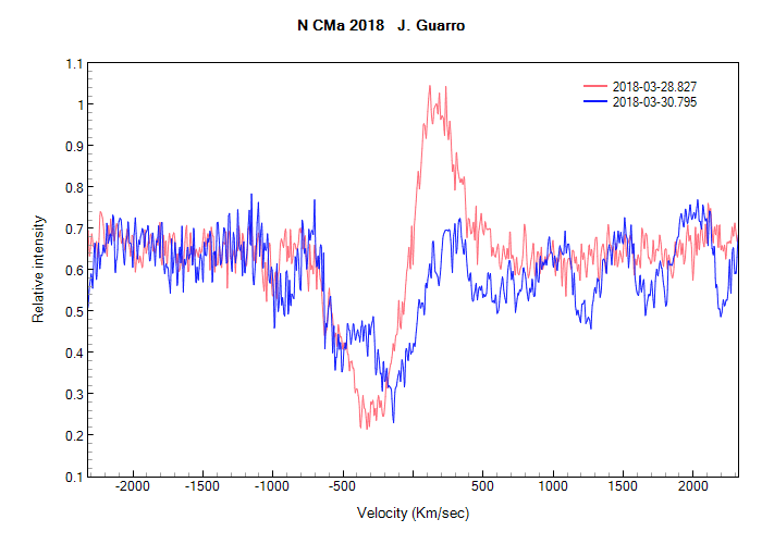 Here is my LISA spectrum for Nova CMa 2018 taken on 04Apr18: