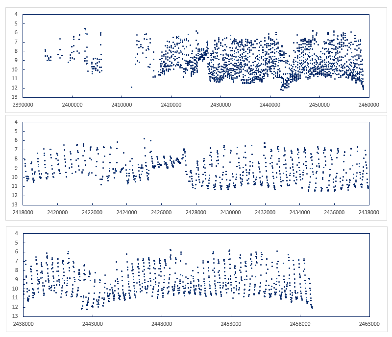 R Aqr at its faintest luminosity since about JD 2430000 (about the well known 44 days period) All the best,