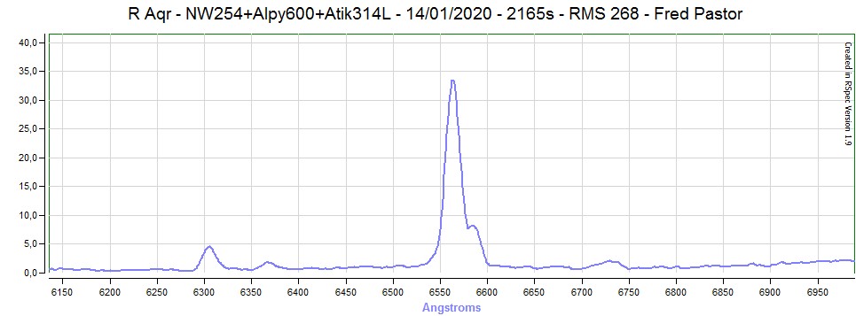 I was able to shot a 49min (7x420sec) spectrum of R Aqr on the 13Jan20. The Object was quite low and seeing was just average; see: