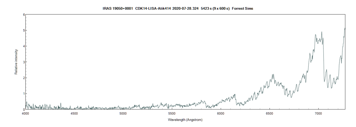 Here is a spectrum of IRAS 19050+0001 taken last night. The fits file has been sent to François Teyssier for the database.