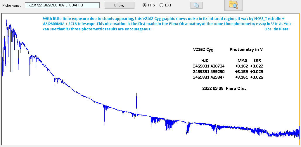 Today I show a new way, a graphics star spectra and its V photometry by the Piera Observatory, take it is really, really easy, and a good system for obtaining complementary and interesting information very useful for astrophysics analysts.