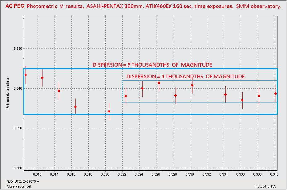 It's possible the greatest CMOS capacity would be able to easily do more exact measurements, also the owners of these ASI cameras without cooling know how their performances are in exposures between 120 to 500 seconds time. Howerer, I'm very glad with the ATIK 460EX results.