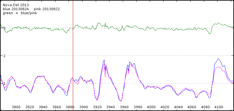 Christian Buil wrote: Some variation (note a feature at 4385.5 A) but not CN line at 4216 A for the