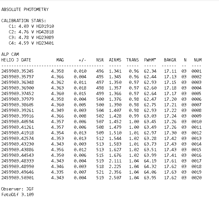 You can see the first Alp Cam spectrographic and photometric results, from 2022 11 19.