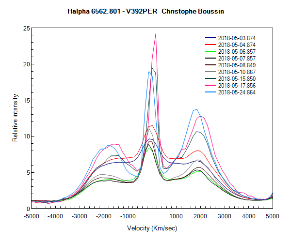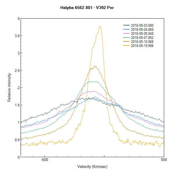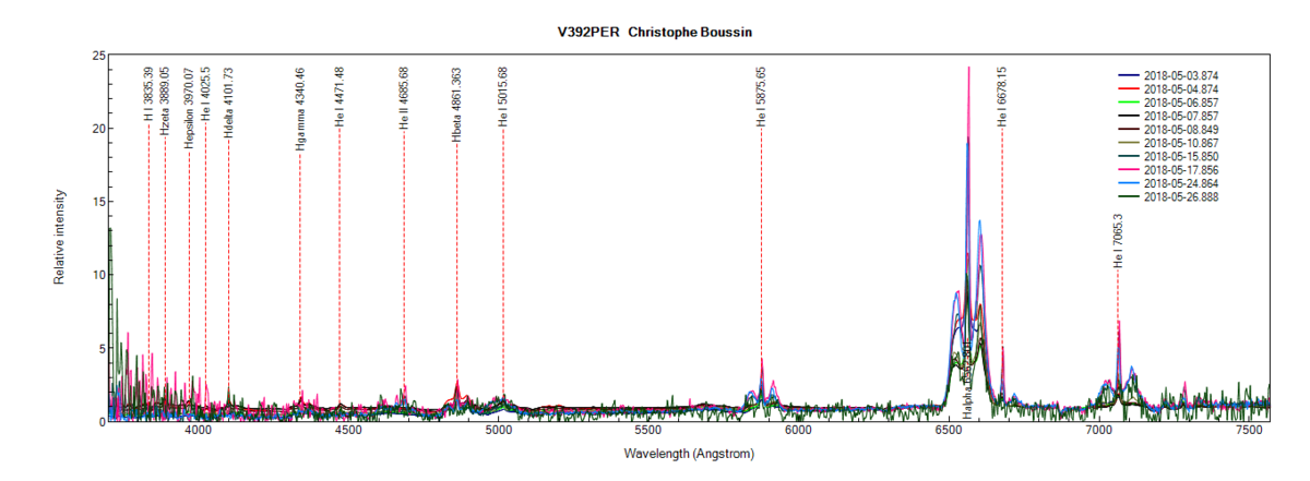 Evolution du spectre de V392 PER du 3 au 26 Mai 2018