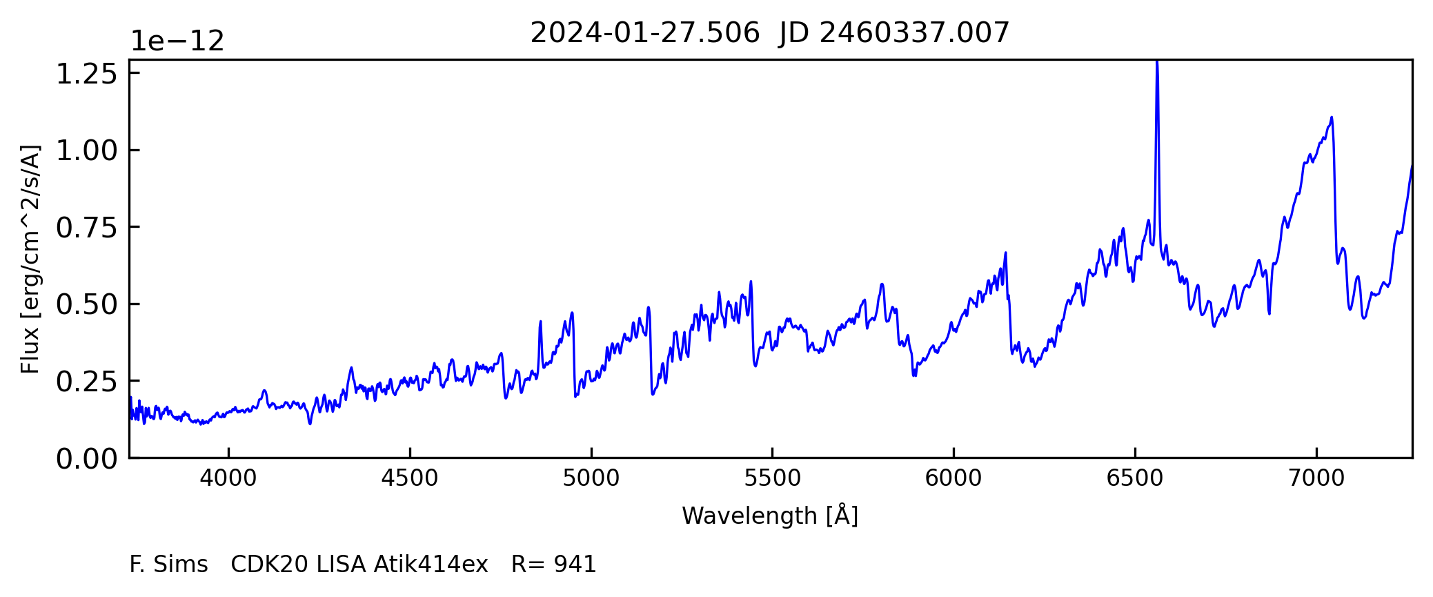 The aspect of the spectrum (continuum and emission lines) are compliant with the spectroscopic evolution of the traget before the "big active phase" 2015-2023.