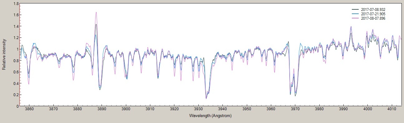 I am not seeing much change in this region yet except for some large and fast variations in the Balmer line profiles which seem larger than at H alpha. (AZCas showed no emission in these Balmer lines.) See attached Hdelta -H10. In particular the event on 20170716 for example. Did anything happen at H alpha on that date ?