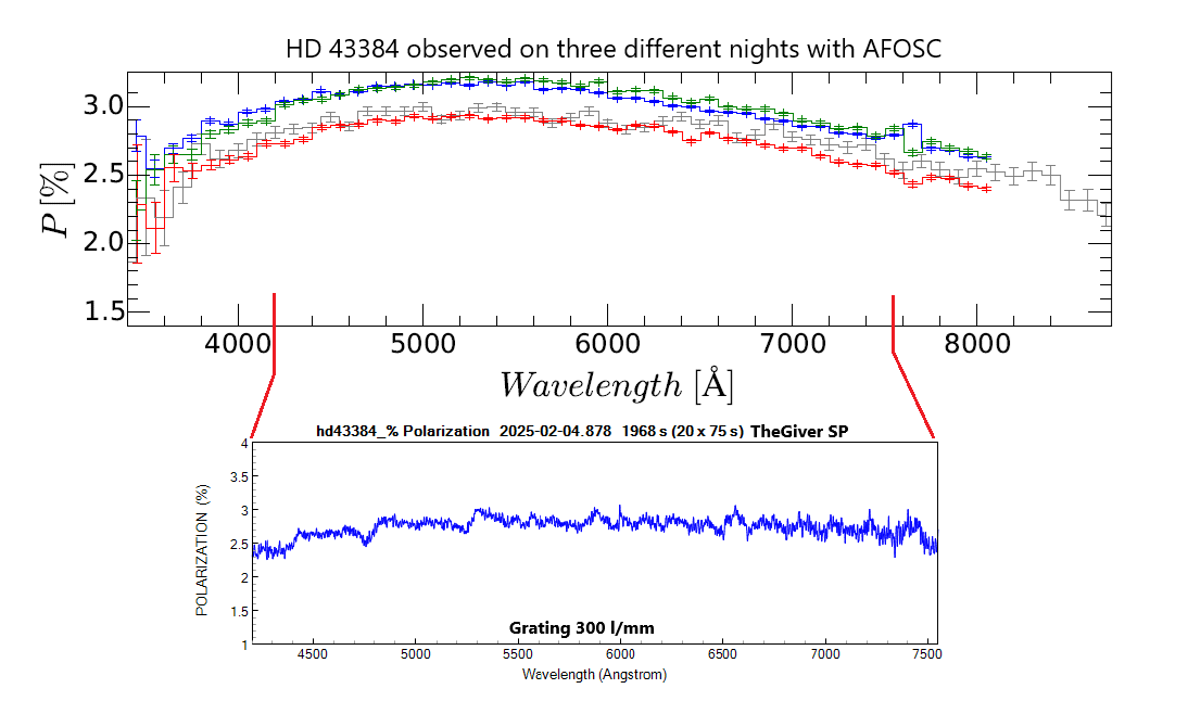 Parallelly to TheGiver observations and their outcomes, some people are working to get good reduction software, in this way, I would show here two pictures of Polarimetric by Toni Jové, who has been working for some months in this software for spectropolarimetric observations.