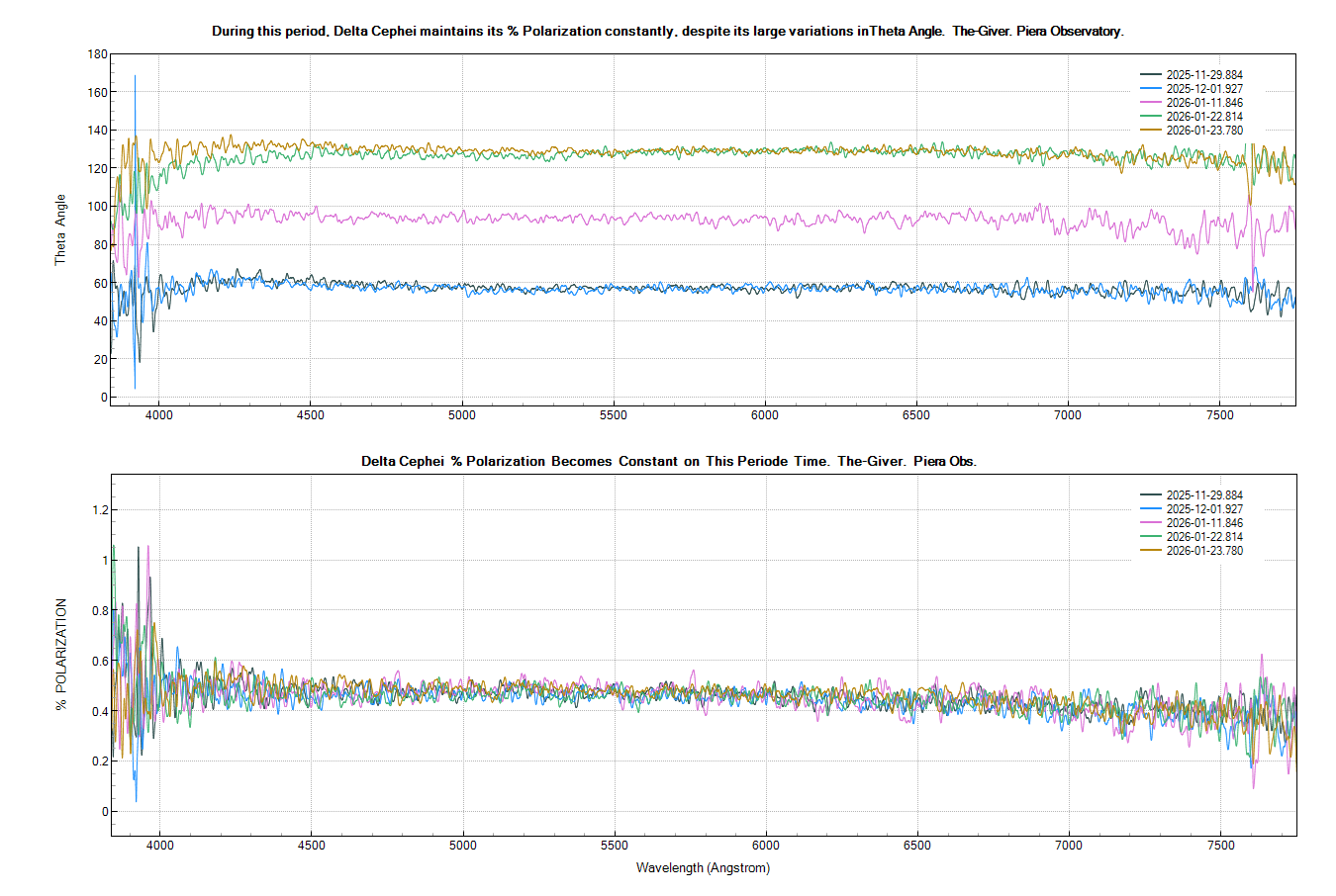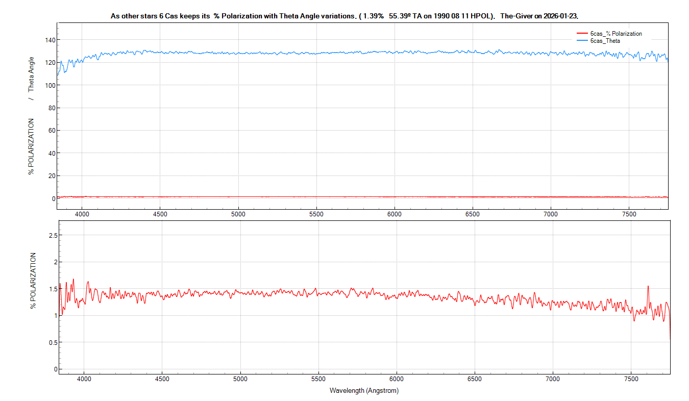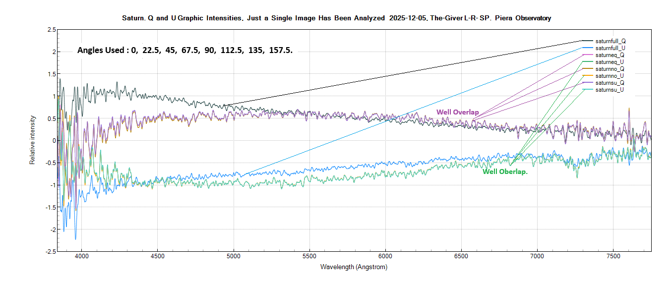 You can see in the first picture only a Saturn Theta Angle, because Saturn has a constant polarimetry % in its latitude regions, the oppositeof Jupiter. But it seems it's only a curiosity due to, some specialists said that the Theta Angle of the Solar System Bodies is useless, because their and our position is changing constantly. That is different in the stars that they carry the North Pole as a reference. Fig.1.