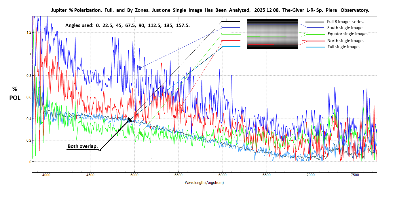 Also, it seems, the best way to show the polarization of the Planetary Bodies is this you can see in this graphic by the polarimeter PICSARR,and for doing it with The-Giver results, it would be necessary to transform the results by virtual photometric filters, go back, and lose a lot ofinformation that one can see in the graphics.