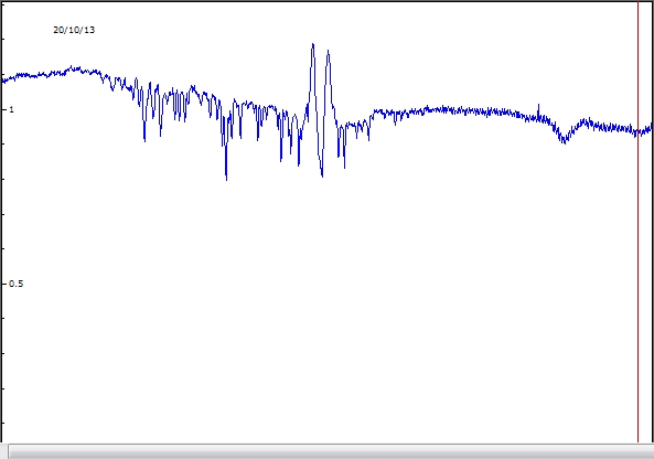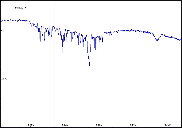 I have already answered to Malc about this in the SASER list. Achernar is actually showing a strong Ha emission, as shown in Malc´s excellent profile. However, we believe this is not news and that the current phase has started sometime around Jan 2013. Through all the second half of 2012, the star was showing the normal B phase, with Ha in absorption (Pls see the attached file "121022 Achernar". From Jan 2013 onwards, however, that pattern started to show a clear change to emission, as it can be seen in the attachments below ("130122", "130702", "130822" and "131020"). All of these are jpegs from the line profiles of Achernar obtained by Rogerio Marcon and myself in the course of our Be patrol during last year. (Newtonian 315mm, homemade spectroscope by Marcon, 2400 l/mm, Audine KAF1602; the first image has poorer resolution because at that time we were using a wider slit).