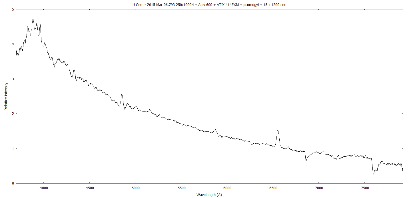 François, congratulations for your great spectra (I also see the recent Nova Cyg 2014 observation)! During last U Gem outburst, Vmag remained brighter than 10 for about ten days. Unlike in the previous case, this ouburst occurred in a favourable moment to follow the decline phase.