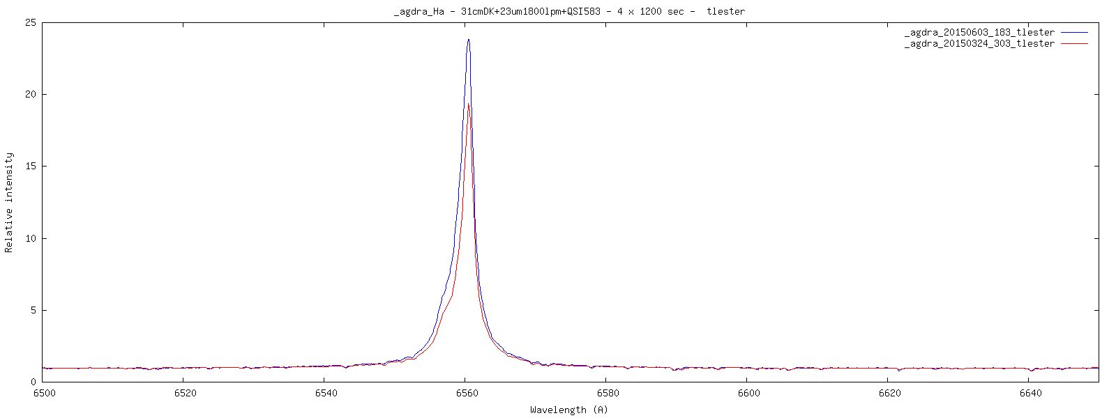 AG Dra for June 3rd compared to my last shot on March 24th (corrected for heliocentric radial velocity).