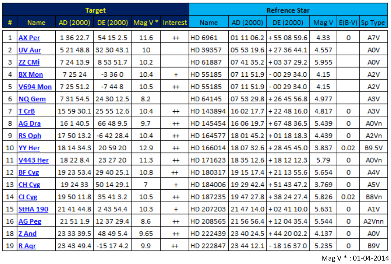 Tu as les étoiles de références conseillées par François Teyssier pour chaque étoile symbiotique.