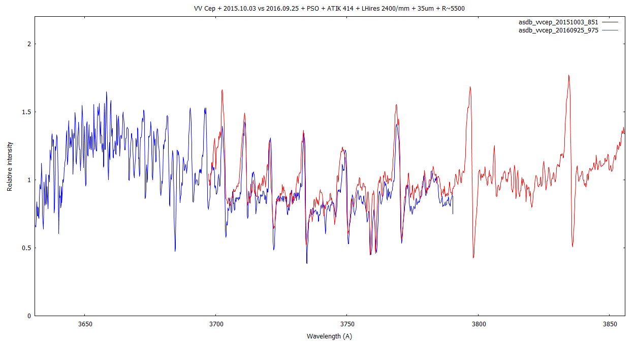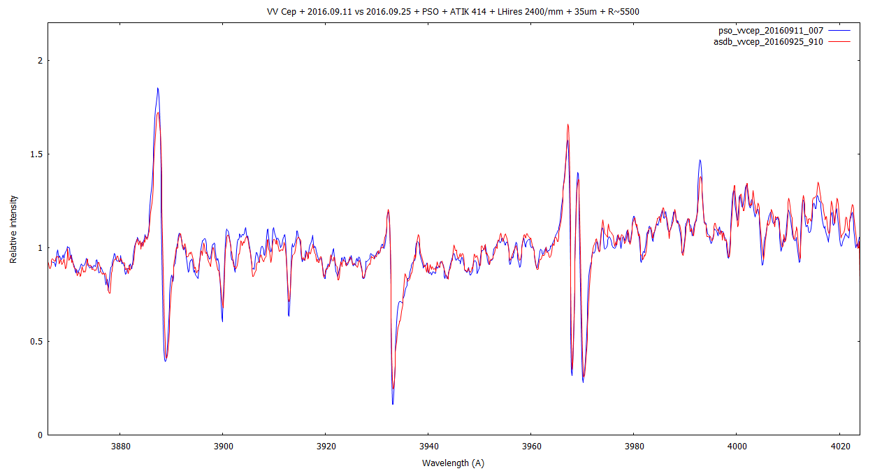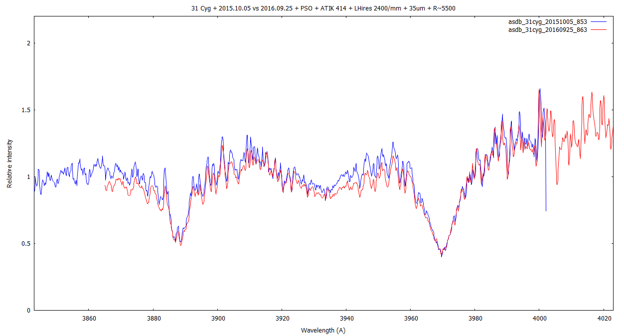 Doing some near-UV captures of 31-Cyg, 32-Cyg, VV Cep - in 3843A - 4001A, I've found the 2400/mm quite usable in this region.