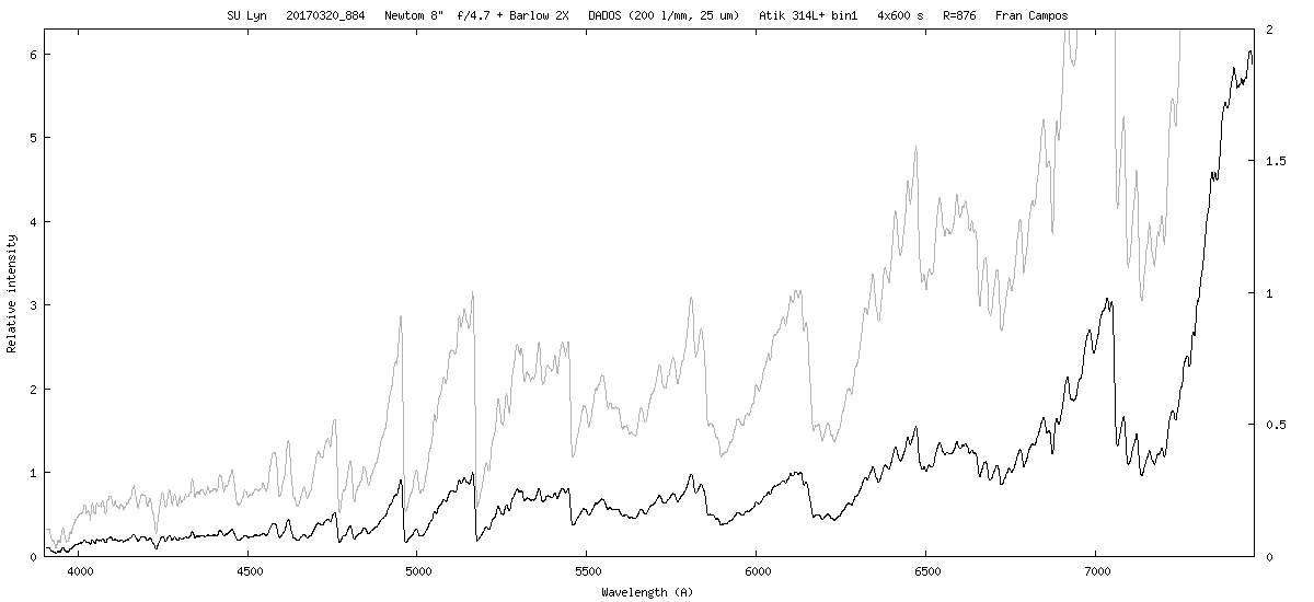 Ok, I will try to take a low resolution (R=800) and a medium resolution (R=6000) spectrum every month. For the moment, here is one taken five days ago.