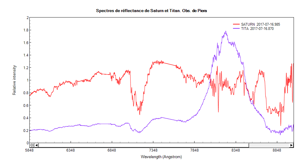 J'ai un bon nombre d'observations de Titan dans les années 2011 et 2012, également dans l'infrarouge avec résultats bons et estables. Quand il n'y avait pas de nuages. Ensuite, les anciennes observations pourraient être comparées au courant, en essayant de détecter des variations possibles dans les bandes de méthane, en particulier vers les 8630 et 8900 angströms.