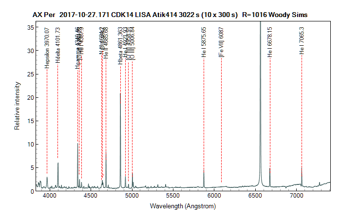 Details of AX Per spectrum taken the 7.8/11/2017 (RC 10 inch, modified eShel (135MM Samyang), ASI1600MM camera):