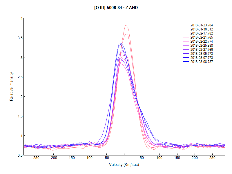 From echelle spectra obtained by Joan Guarro, Tim Lester and François Teyssier Significant broadening of the line and shift toward blue