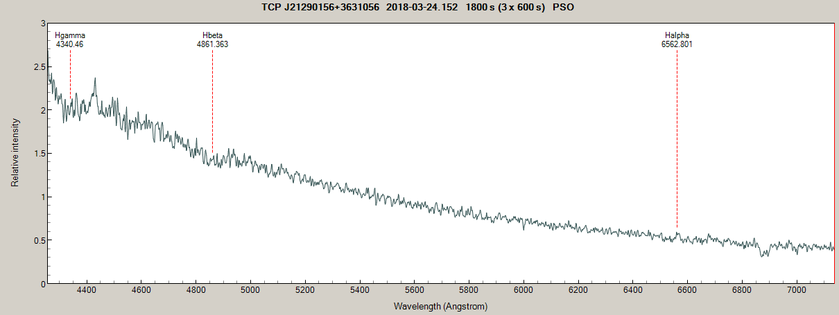 You are right, and as looking harder into the noise, I do may figure out an outstanding peak at H-alpha with a usual W-shape might be around H-beta (and maybe H-gamma):