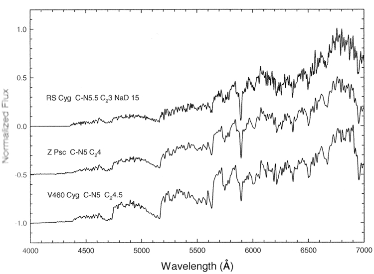 The spectrum appears to be a close match to the carbon N-type star RS Cyg is Fig 8.16 of Gray & Corbally shown below.
