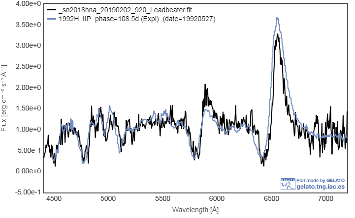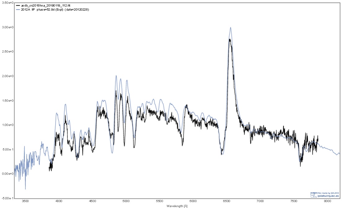 After almost 2 months of this SN's discovery, last night I've put it on the list as the 2nd larger target for the case if weather allows (30 cm f/4 Newton, Alpy 600, 18 micron slit, ATIK 414, 3 x 1800 sec, 2019.01.19.112, R~670), cutting Gelato's comparison as the 2nd match: