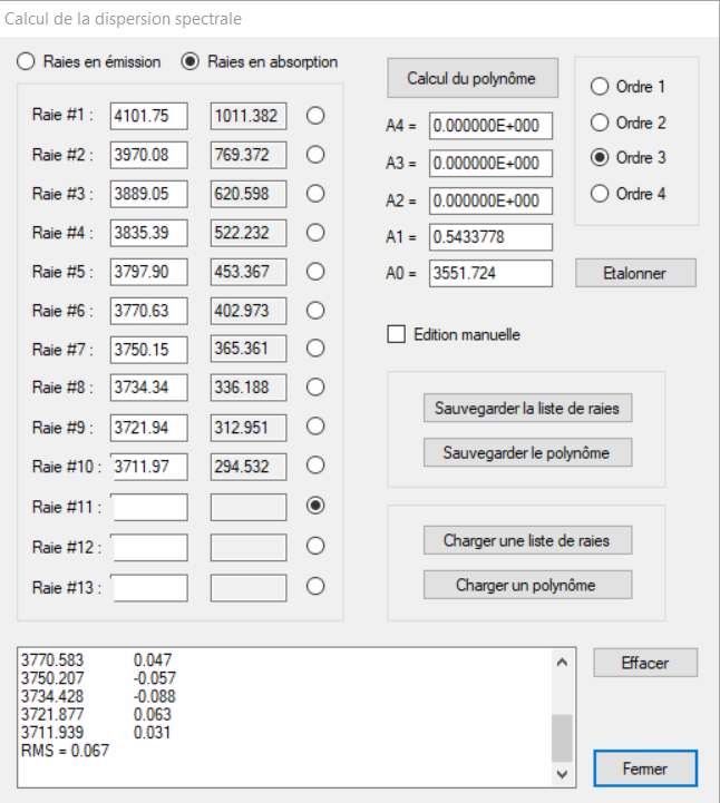 La calibration avec 3 raies de la lampe Fluo-compact est bonne, mais avec 10 raies de Balmer c'est encore mieux !