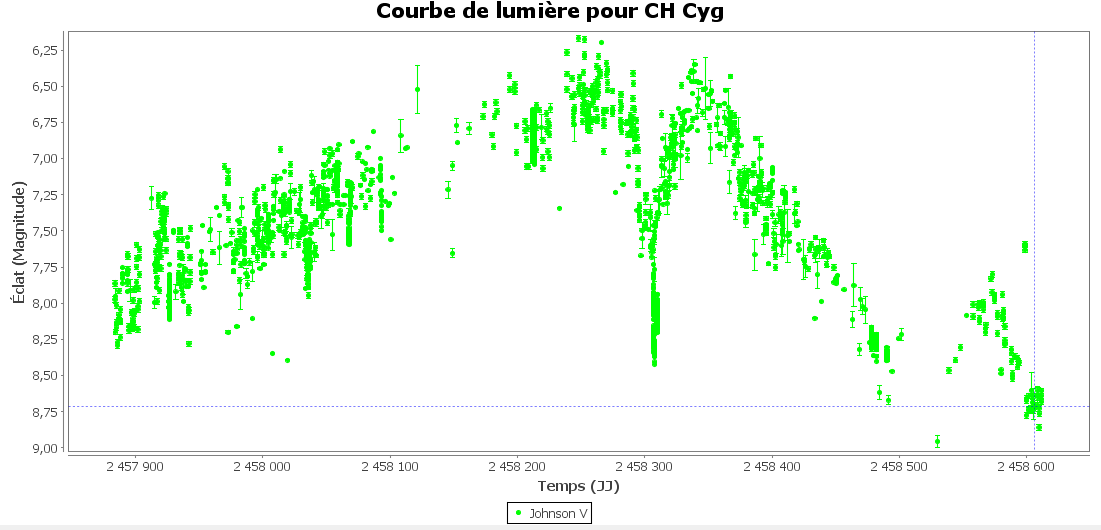 the interesting thing is that CH Cyg (V and B) its getting fainter (abruptly) and in a relatively short time period; When this happened in the past, it indicated a jet ejection and dimming of the LC by the ejecta/dust in the inner circumbinary environment. So close spectral and photometric monitoring in the next few months would be of a great interest.