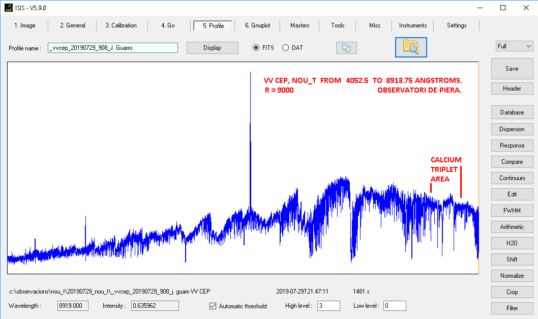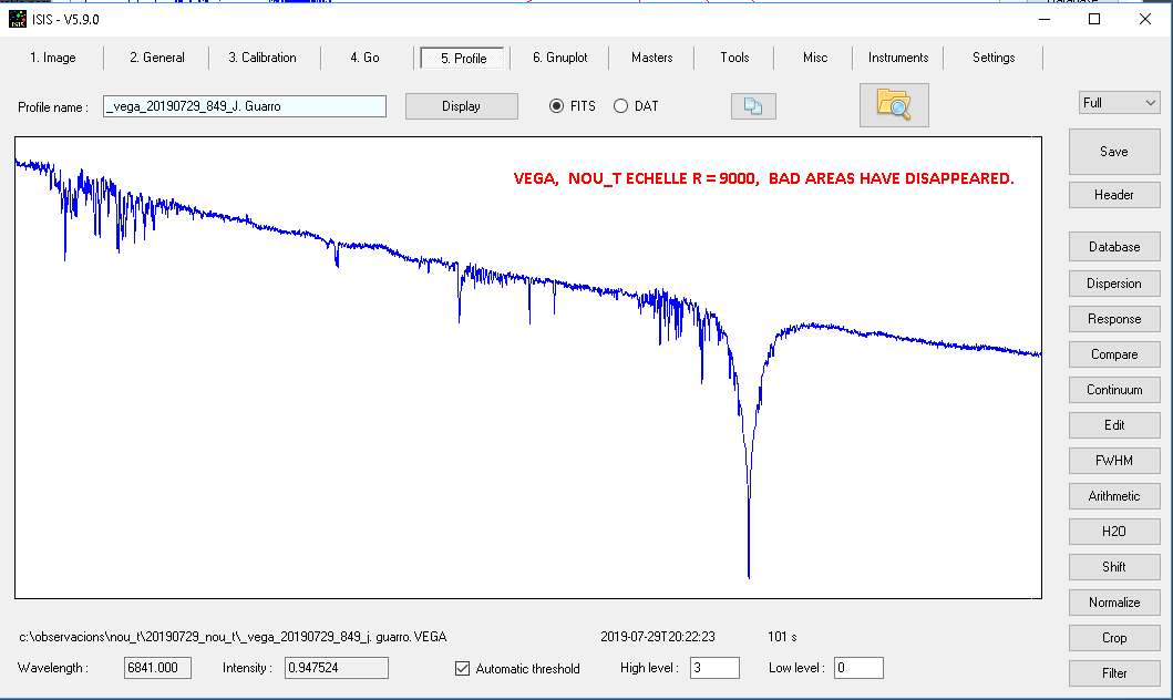 Slowly I'm improving the results of my new NOU_T echelle. I'm showing you two test stars at last night. 20190729.