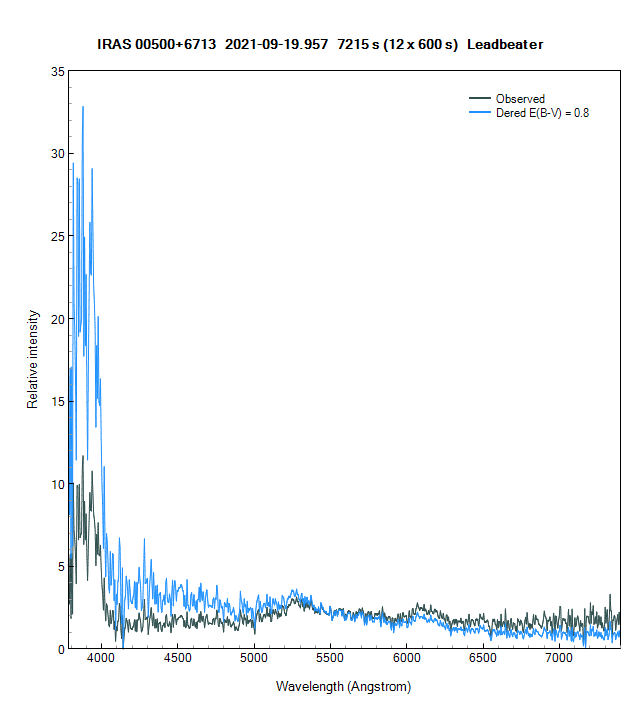 I tried it last night with the ALPY 600. The SNR is low because of the bright moonlight but the main features are there. The O VI line at 3811/3834 is very strong, particularly