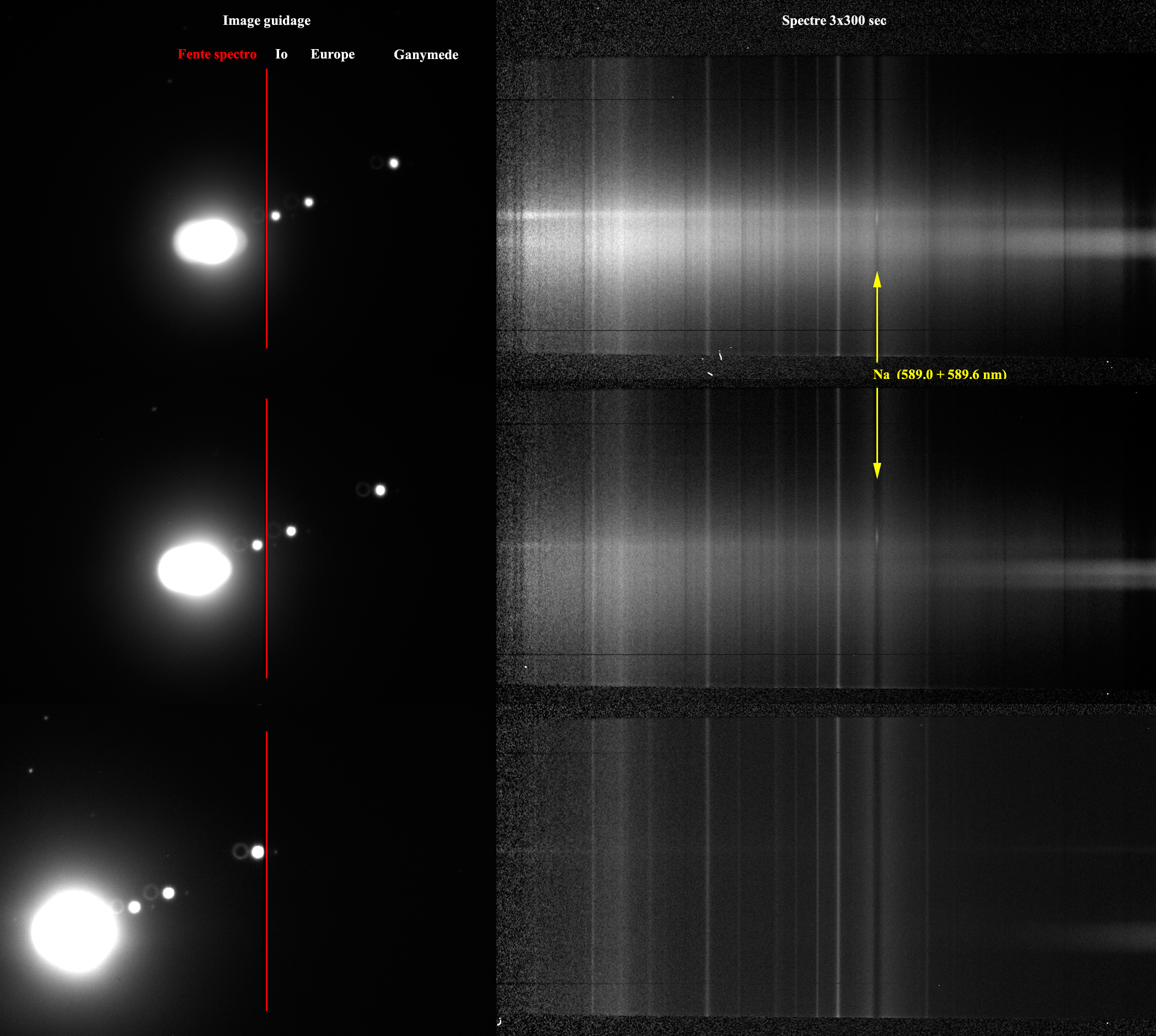 Measuring at an angle to the orbit is interesting. The Na emission in the two spectra either side of Io is either above or below the glare of the satellite so it looks like Sodium lies mainly in the orbital plane