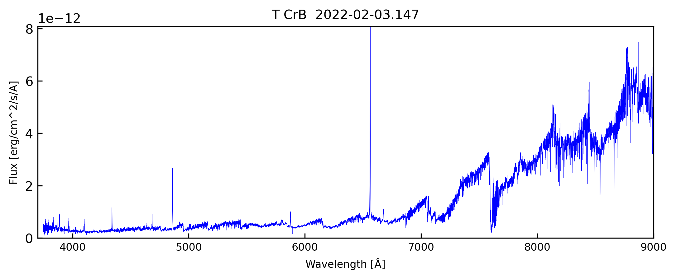 Spectrum of T CrB taken the 12/01/2021 by using a 4-inch refractor and a Star'Ex spectrograph at power resolution of R=20000: