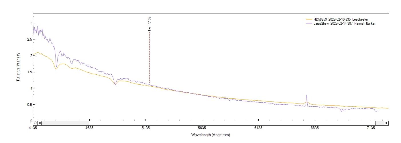 Robin Leadbeater and myself have taken spectra of HD58859. It appears that I initially took a spectrum of the wrong star (facepalm! No guider image was taken - lesson learned!) after noticing it as within reach of my equipment on the gaia alerts page (gaia21bsw). Robin helpfully pointed out my incorrect spectrum (there was a very nearby apparent F type star) after I posted it to TNS.