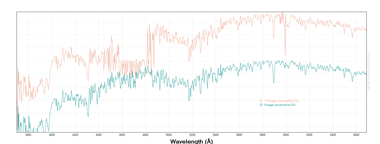 I am attcaching an image of three spectra. They are uncalibrated and without flats or darks applied. The central blue one is a spectrum that always results fine after processing. The other two, with an offset applied for clarity, result always wrong after processing all the 170 together, but fine individually or with only a few more.