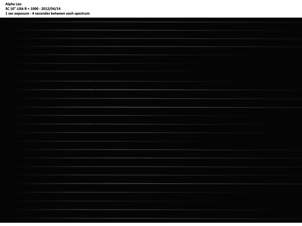 Spectre de alpha leo. Les images sont issues d'une séance d'acquisition de 16 poses, d'un seconde chacune, sur une durée totale d'environ 1 minute.