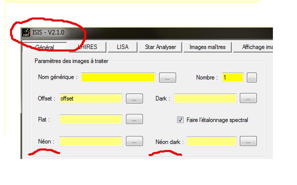 For the dark, ISIS now use the same dark file for the spectrum and the neon. ISIS apply automatically a factor to correct the difference in time exposure. So just indicate the file name of your master dark frame in the field "dark".
