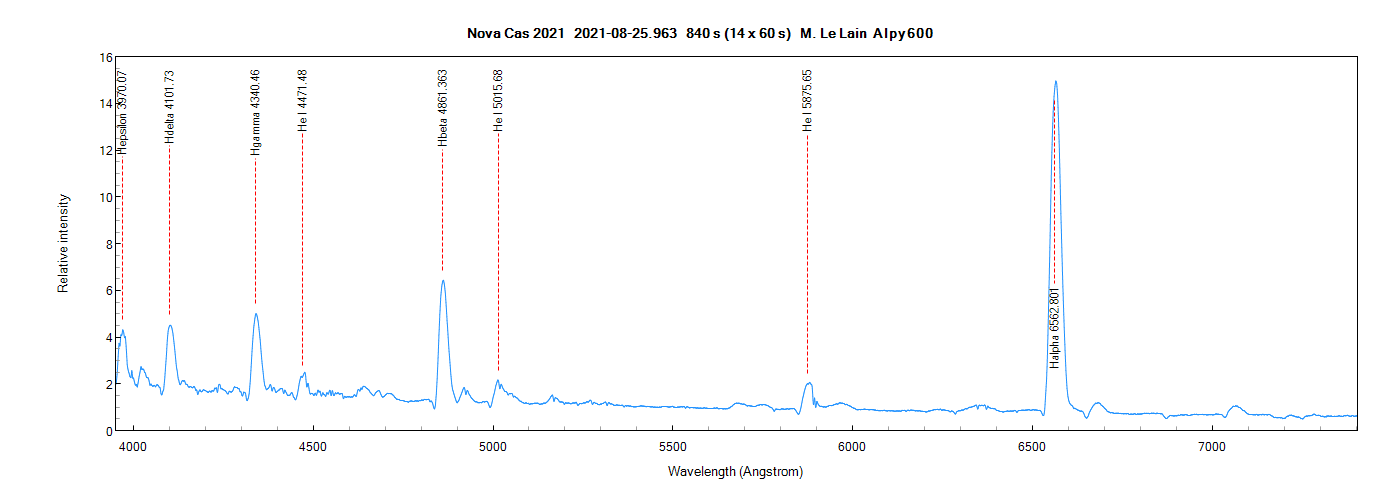 Here is my new spectrum of Nova Cas 2021 with an alpy600