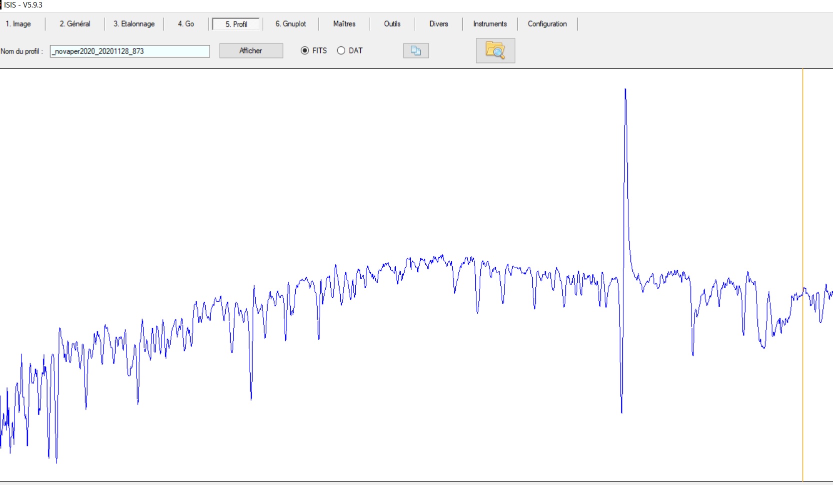 (je suis sur la cible avec l'Alpy, je vous partage le 1er spectre)