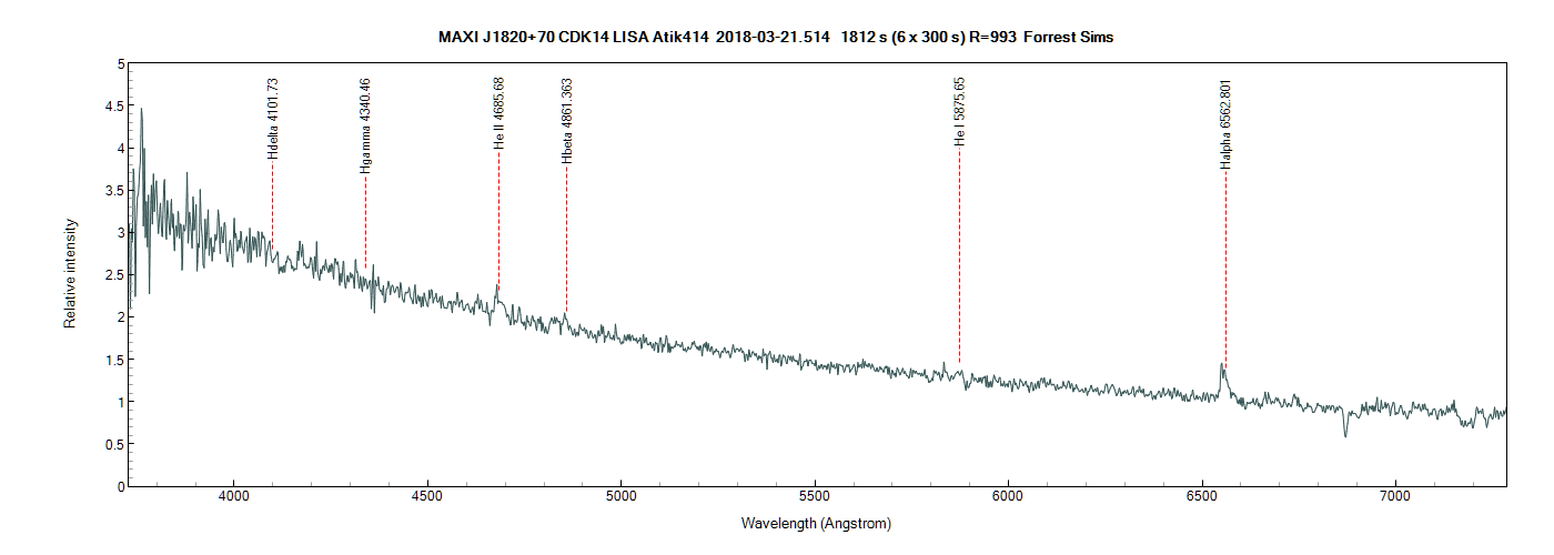Spectrum data from last night for MAXI J1820+70 also now apparently known as ASASSN-18ey.
