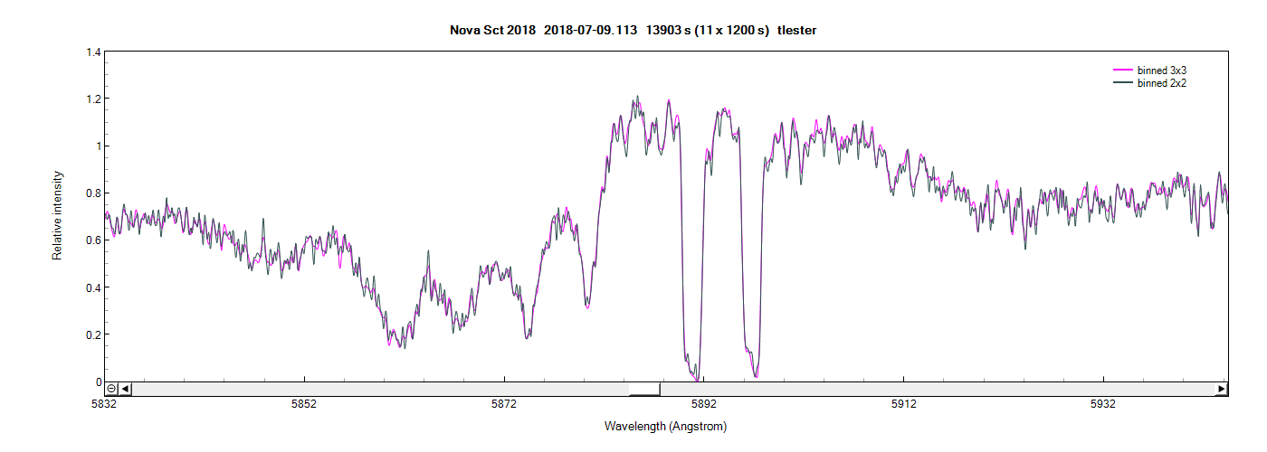 During OHP spectro party Stephane Charbonnel took 2 eShel spectra with a 300mm newton telescope, a challenge according the last magnitude of this nova.