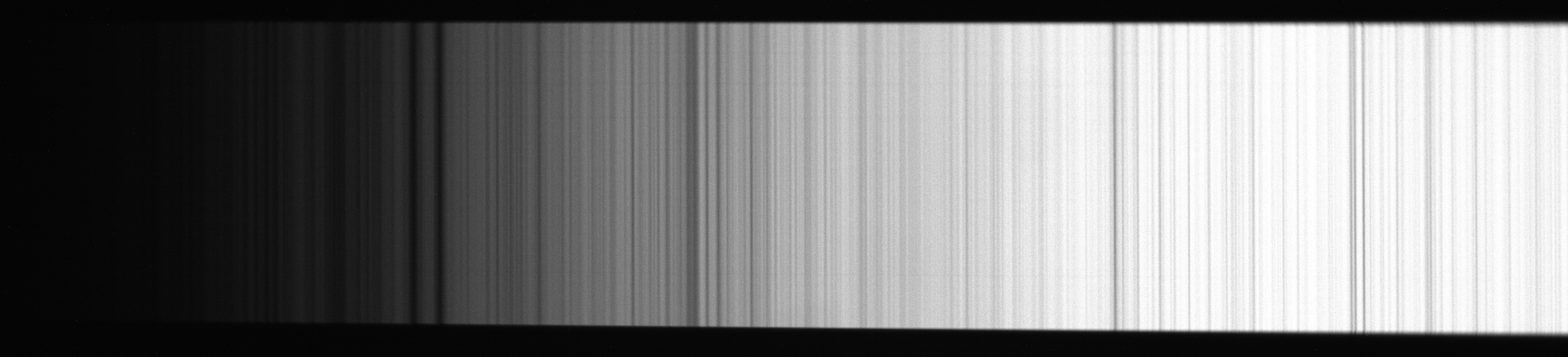 Notes : Réglages ici avec un réseau à 600 tr/mm; j'ai renoncé à m'attarder sur des réglages avec le ciel comme source; réglages faits sur table avec lamp fluo économique face à la fente; la source est placé à 50 cm de la fente et a une étendue limitée à quelques 10x10 cm², un tube de 8 cm (rallonge de porte oculaire) est placée devant la fente pour collimater un peu la lumière ; pas de réglage avec lunette pour l'instant mais cela viendra. Ce point me laisse d'ailleurs dans l'embarras : je ne comprends pas que le résultat soit de cette qualité à quasi pleine ouverture.