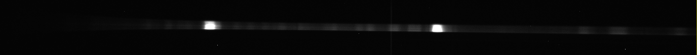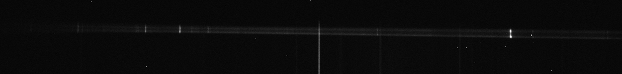 Ci joint YY Her, pris sans doute presque en même temps : trace du spectre beaucoup plus étroite (RMS sur l'autoguidage d'environ 1 pixel). Tu remarqueras que la focalisation du télescope est perfectible (dans le rouge) : c'est la variation de température ambiante qui a provoqué une petite modification de la focale.