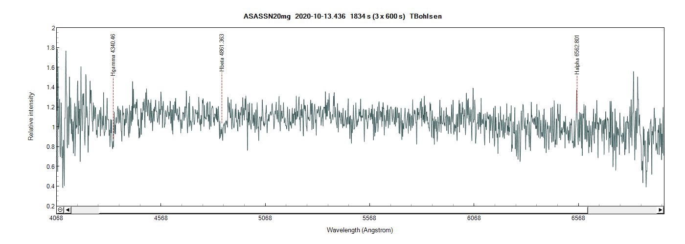 Looking at it (squinting) I can make out Ha emission and absorption for H beta and H gamma. Looks blueshifted a bit - Ha at -132 km/s.