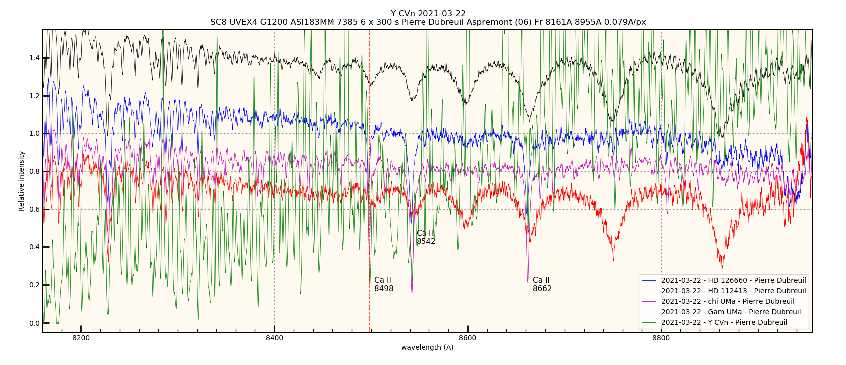 je confirmerai lors de prochaines observations, le spectro ayant été réglé plus finement à l'aide des 4 lampes néon situées devant l'ouverture du télescope RC8.
