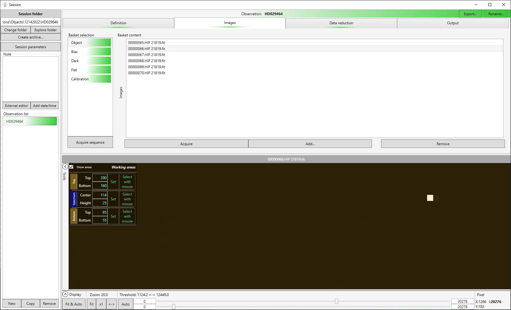 Screen shot 2 - Light Frame - shows a hot pixel at 1266,183 @ 20276 value