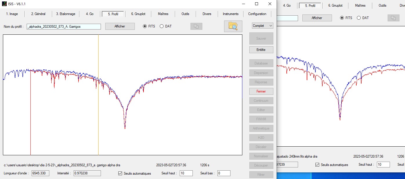 I had a problem with the instrumental response, it was because I have my files in ".FITS" and the reference spectra are in ".FIT", when selecting the reference spectrum it gave me an error "not found" I have activated before clicking "Réponse" in ISIS the extension ."FIT" ok.