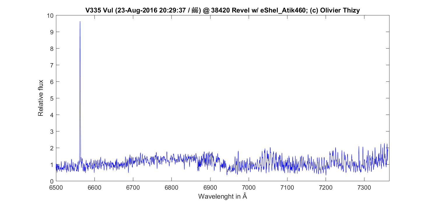to have some fun and push my equipment I did 4h15min on V335 Vul tonight. Not all individual spectra are ok but the outcome is still nice with lot of details and an overall shape which looks like the one published here before.