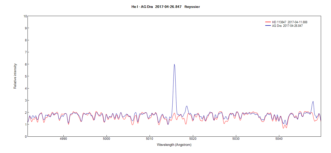 Here is my low resolution spectra of AG Dra, taken last night on 26Apr17: