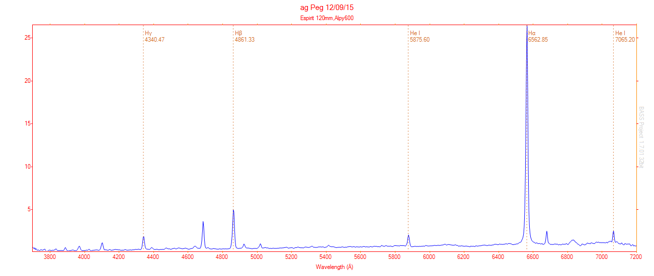 Here is AG Peg spectrum of 2015/09/07 with Alpy600 (0.485 A/pix)